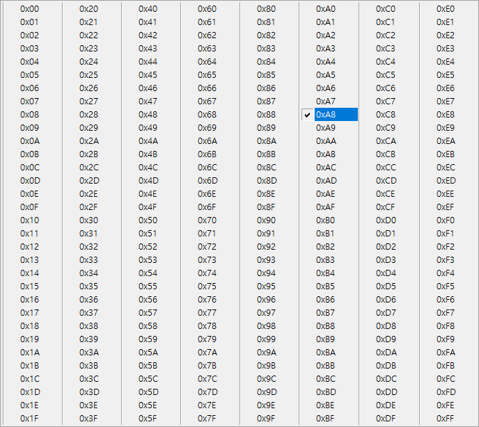 두 기종은 0xA8 로 지정해야 읽을 수 있습니다.