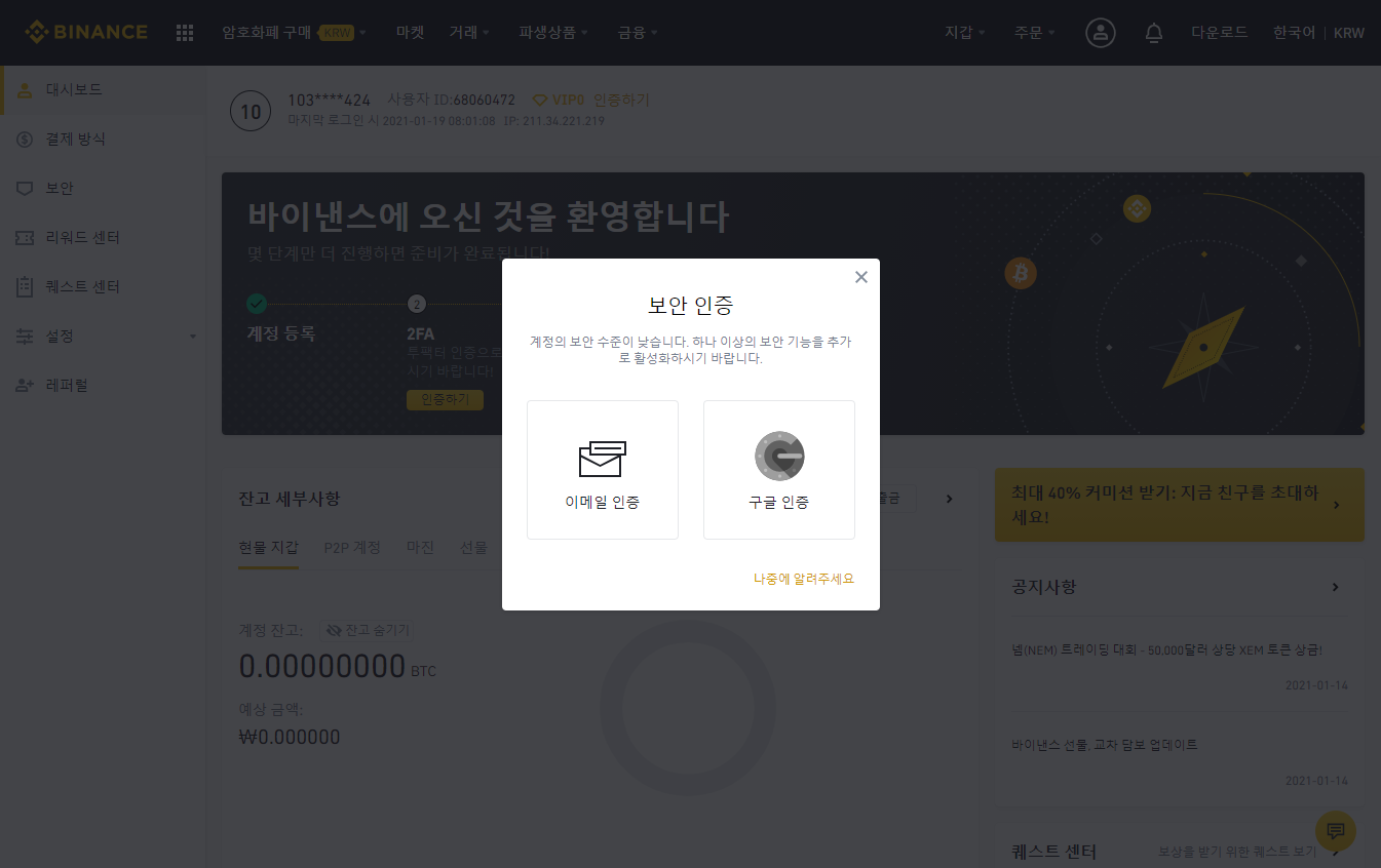 바이낸스 가입 절차에 대한 글을 적어 봤습니다.