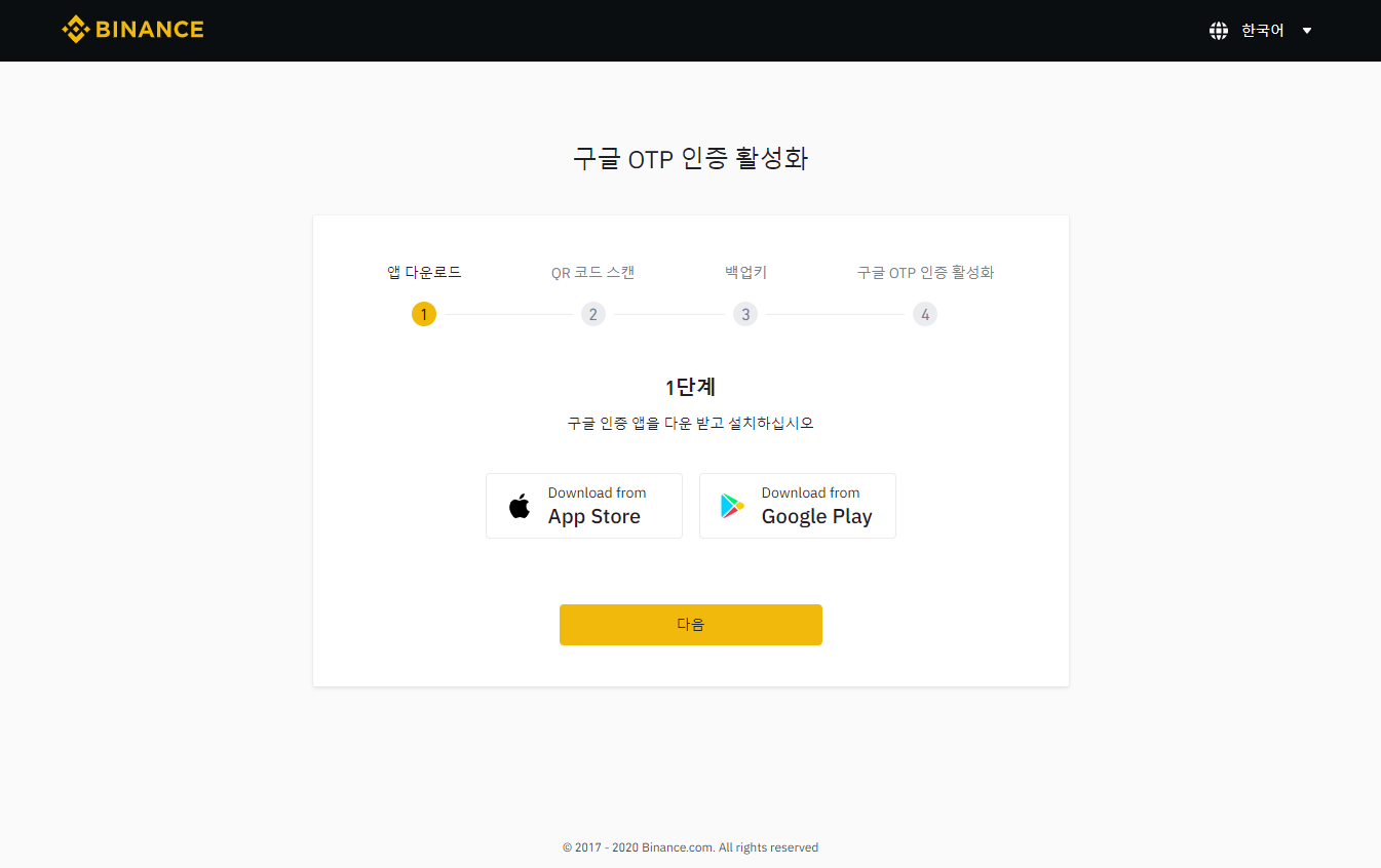 구글 OTP 에 바이낸스가 등록이 되면