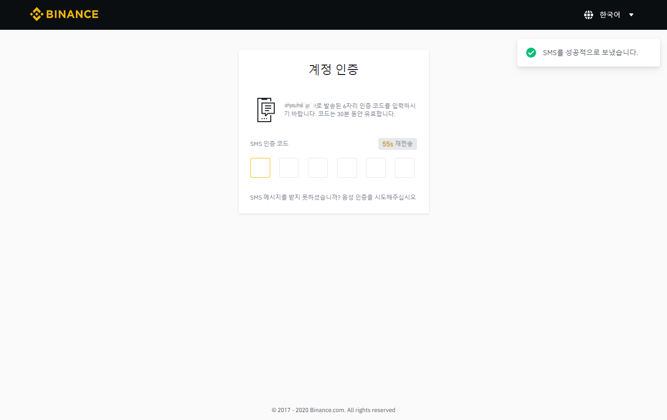 마지막으로 휴대폰 문자로 인증번호를 보내주는데