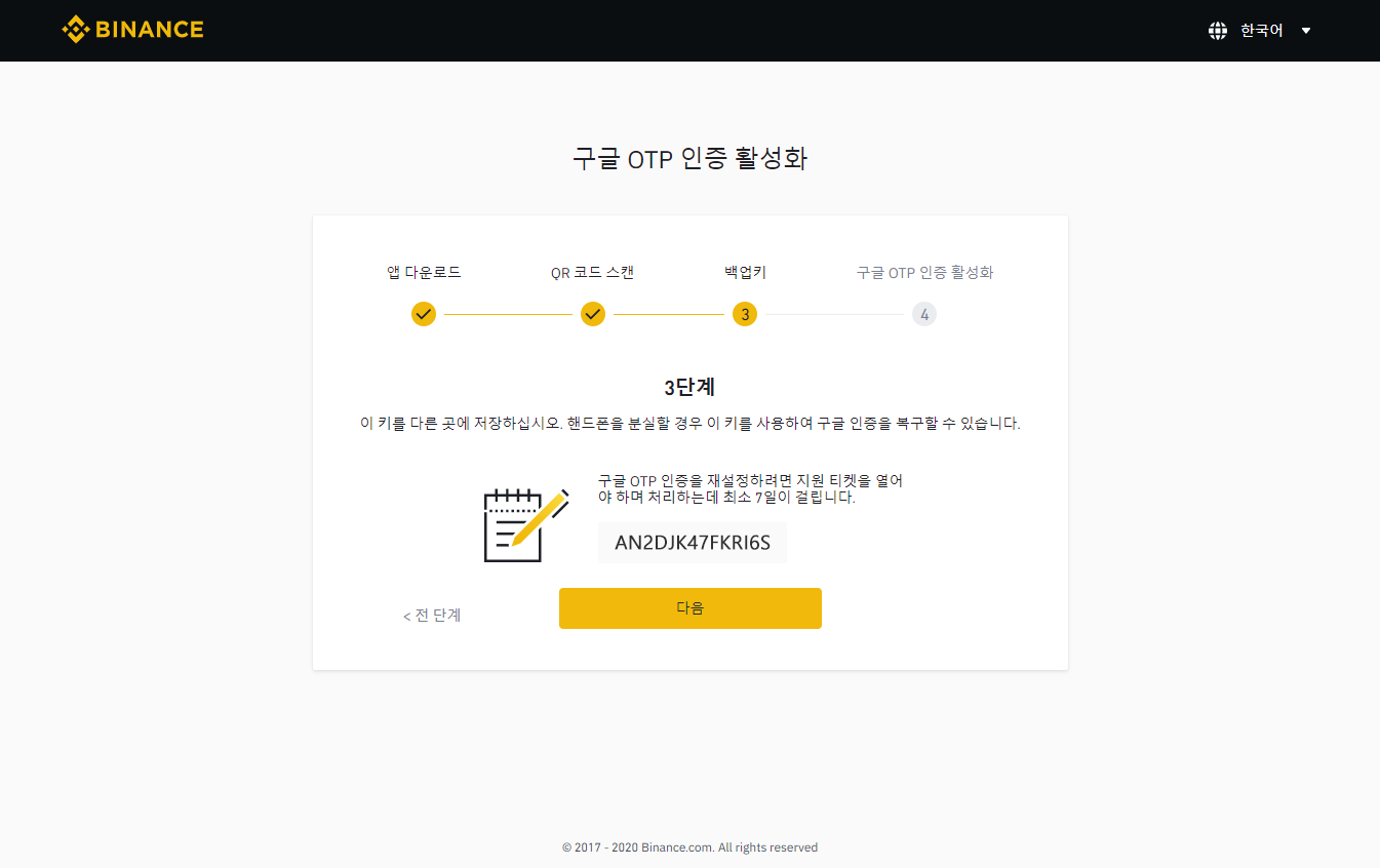 이 단계를 지나면 바이낸스 2차보안 설정이 끝났습니다.