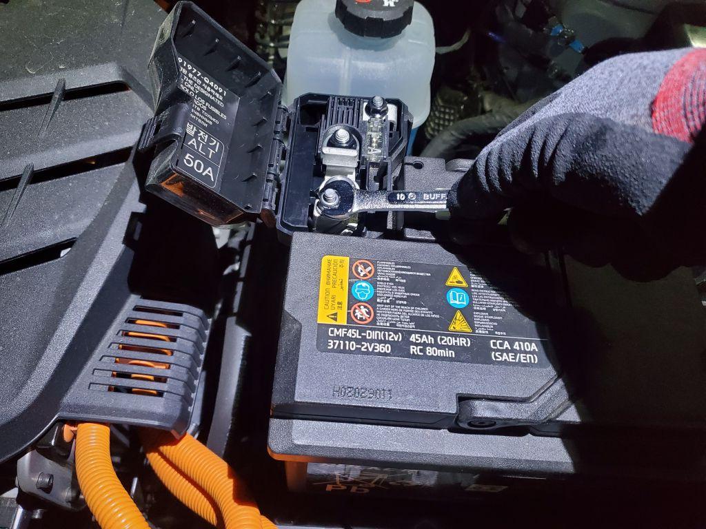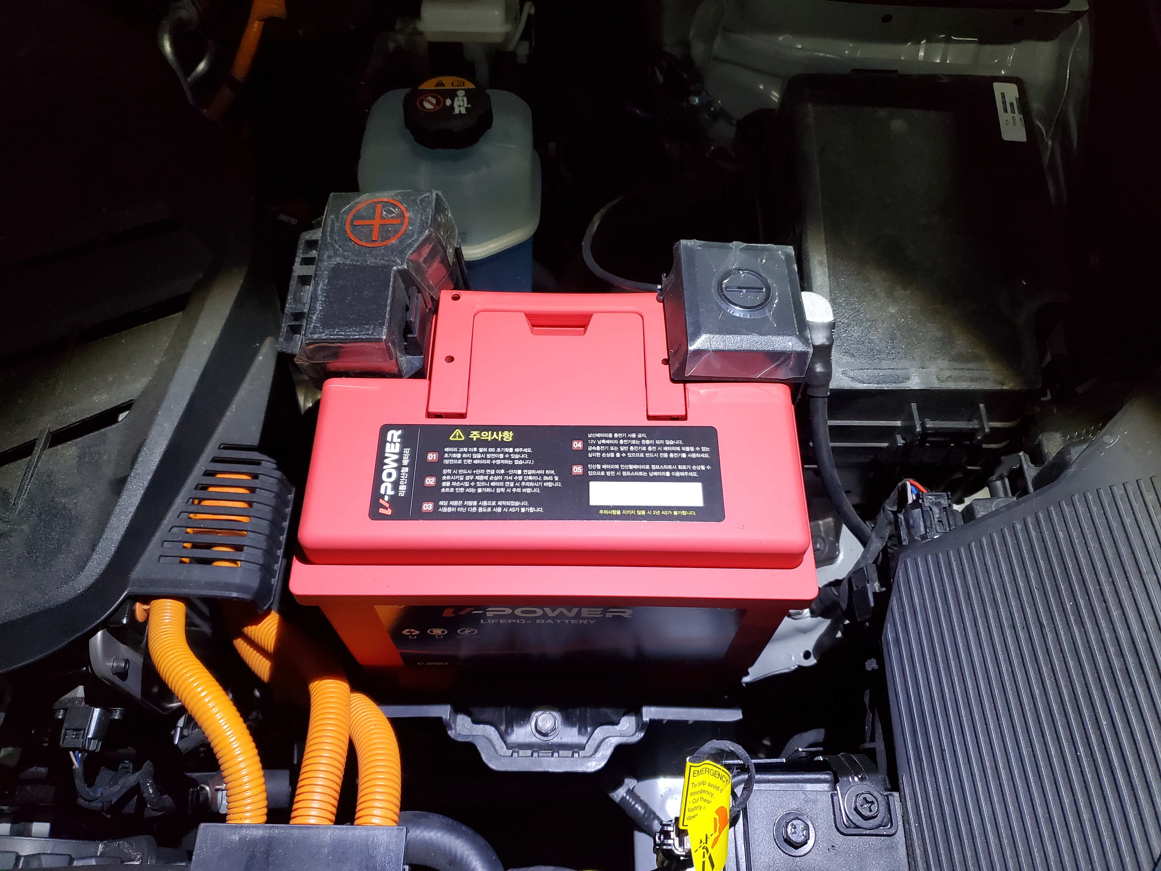 니로EV에 장착되어 있는 순정 납산배터리입니다.