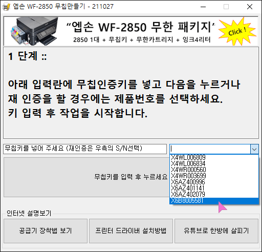 엡손 WF2850, 2851 무칩펌 변경부터 무칩인증을 한방에 :: 2850GO.EXE 다운받으세요