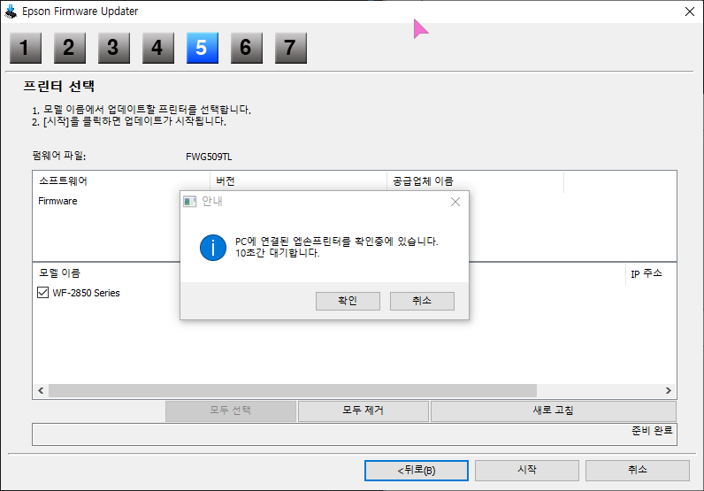장비 시리얼번호를 선택한 후 다음단계로 넘어가면