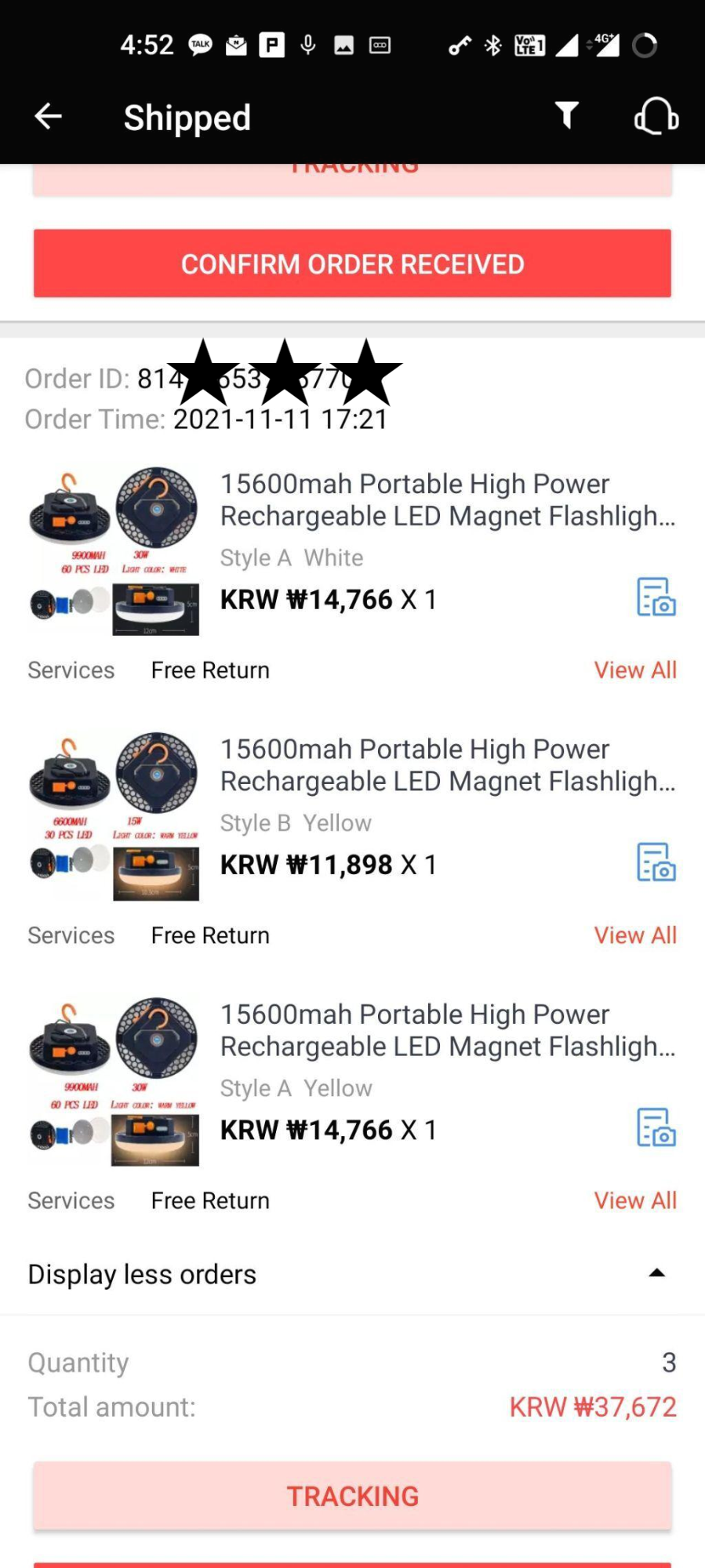 이번 광군제를 맞이하여 알리에서 주문한 물품 중 하나가 캠핑등입니다.