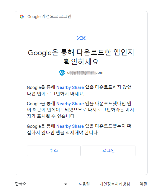 이름하야 Nearby Share 입니다.