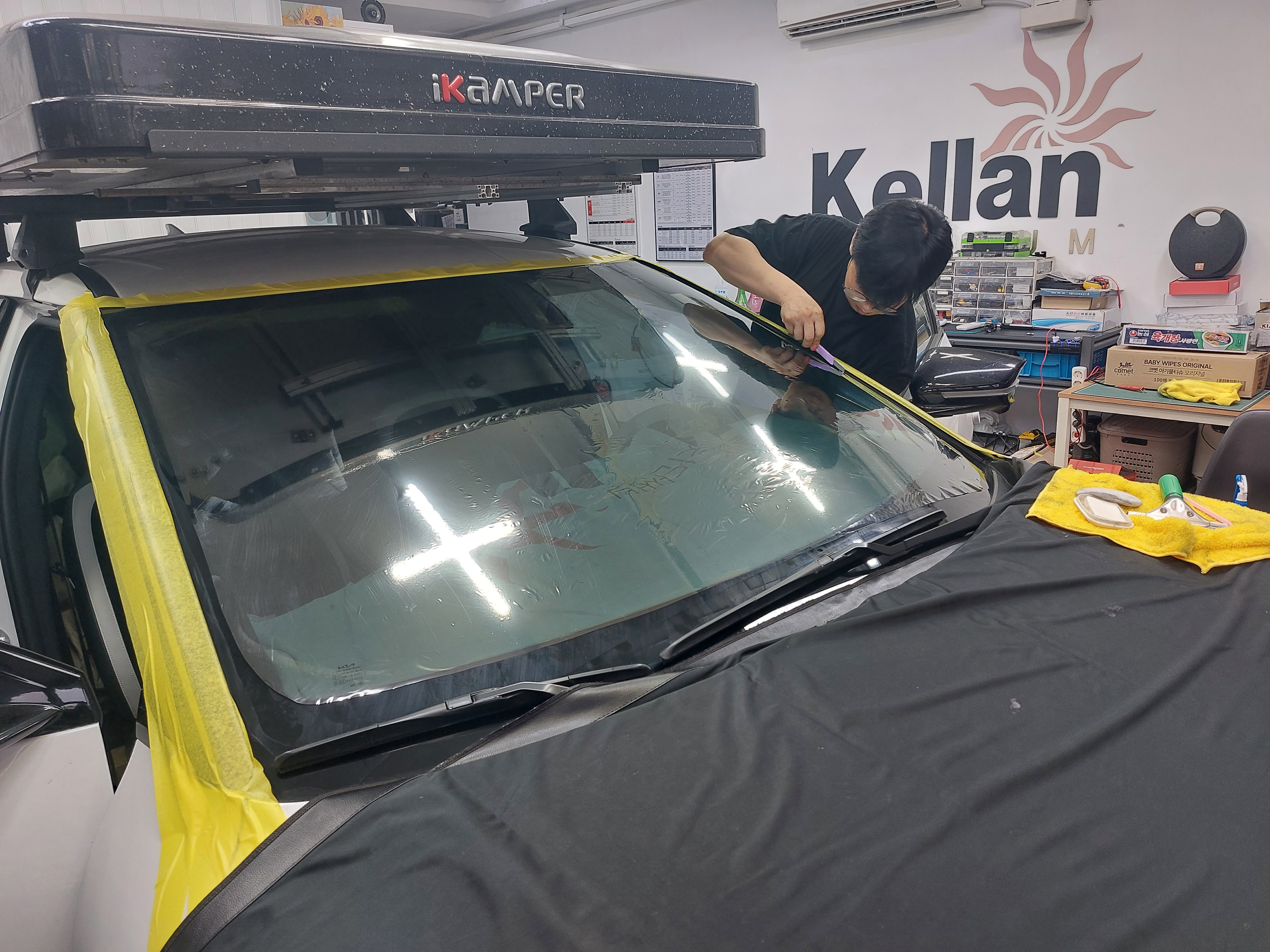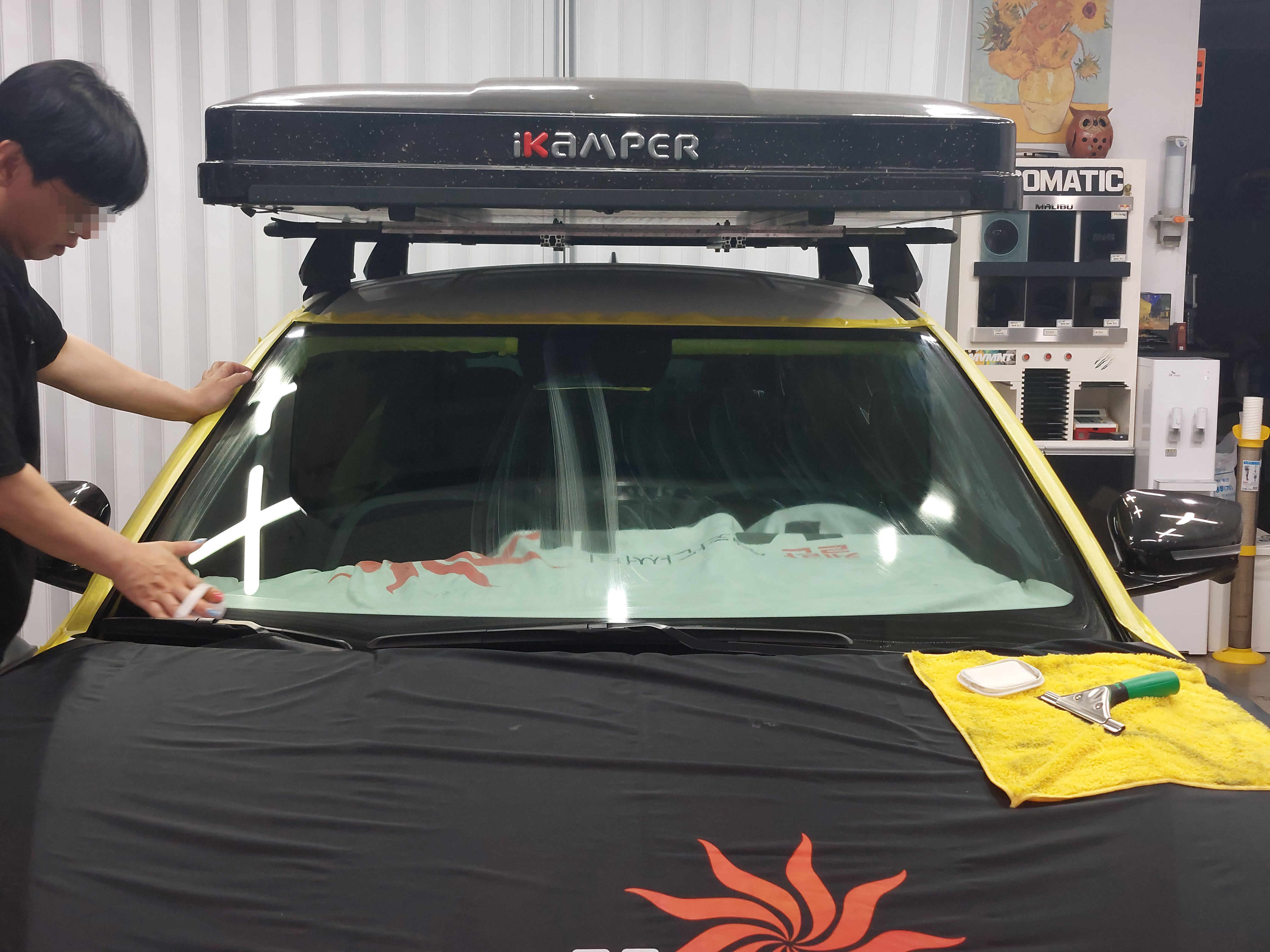 무척 깔끔하게 전면 썬팅이 교체가 되었고