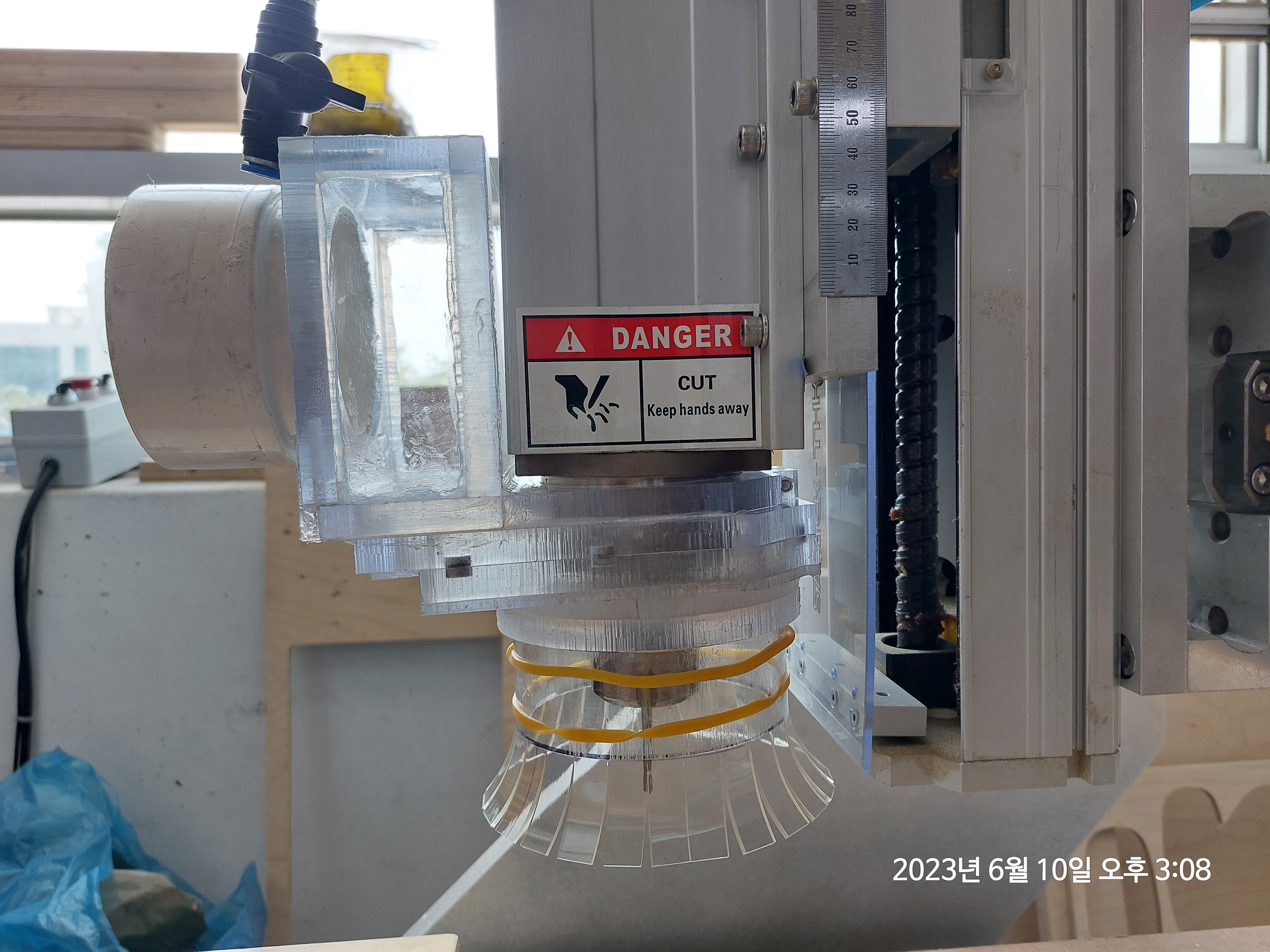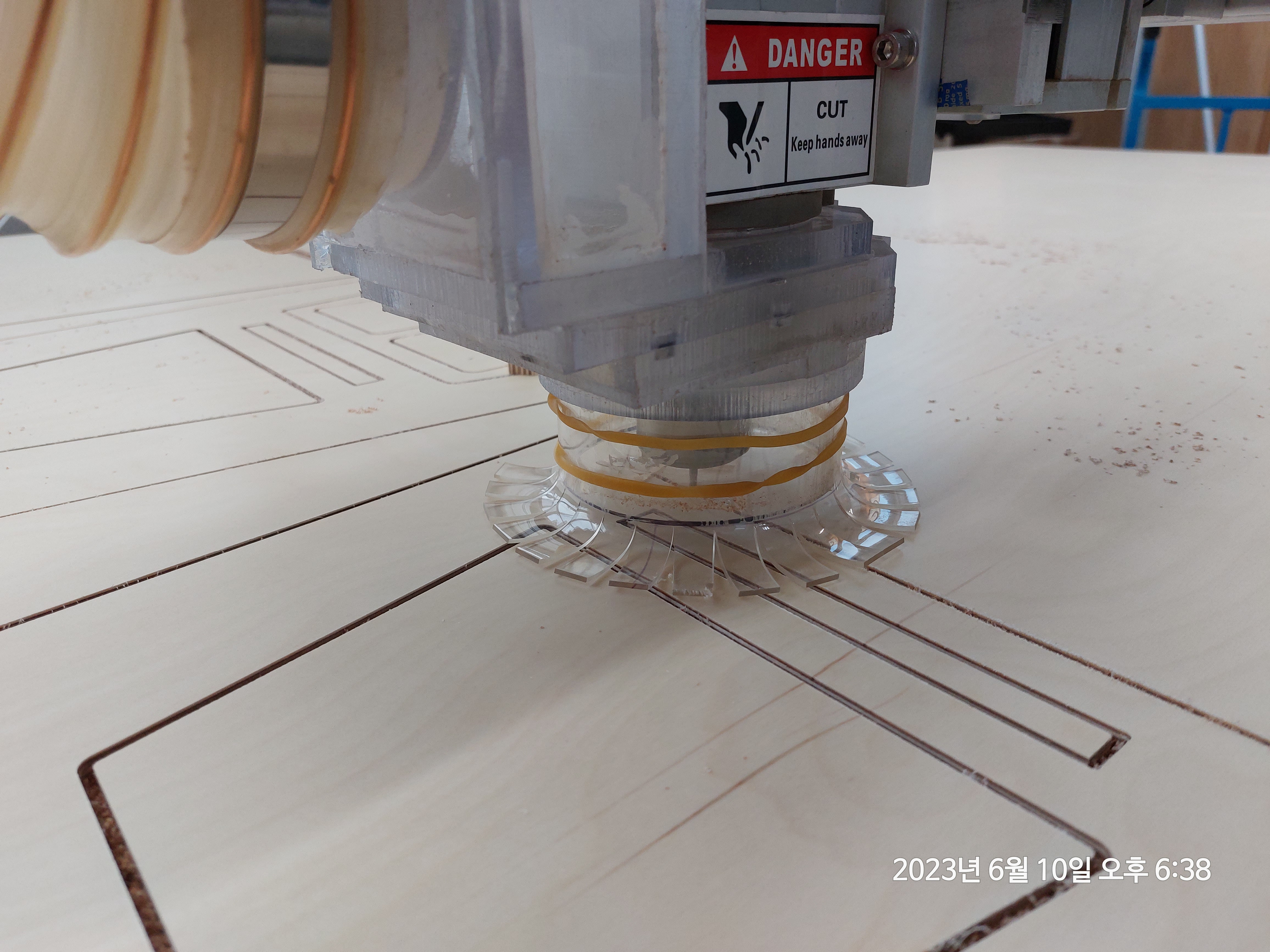 집진기 호스를 연결하고 고정까지 끝마친 상태입니다.