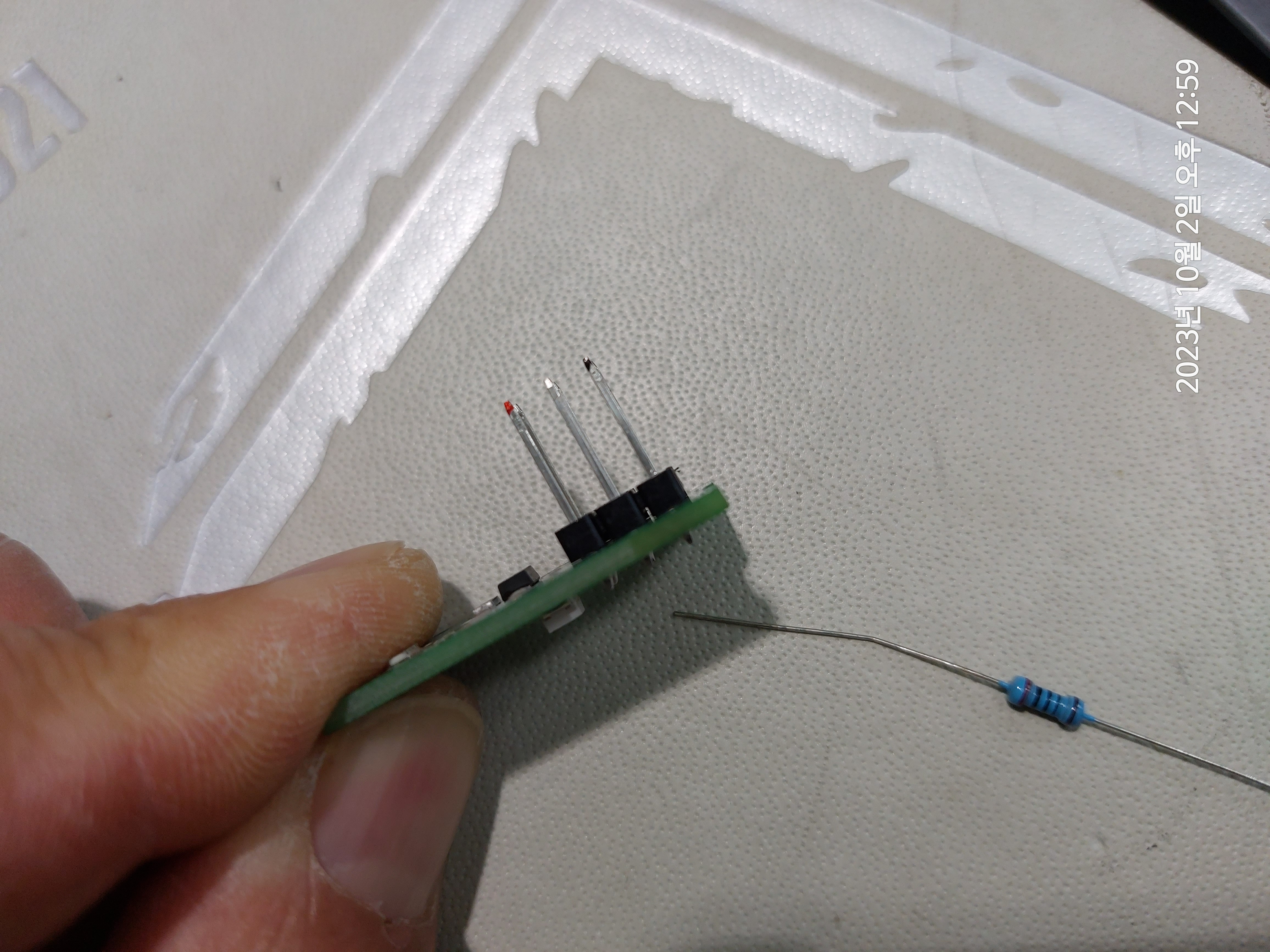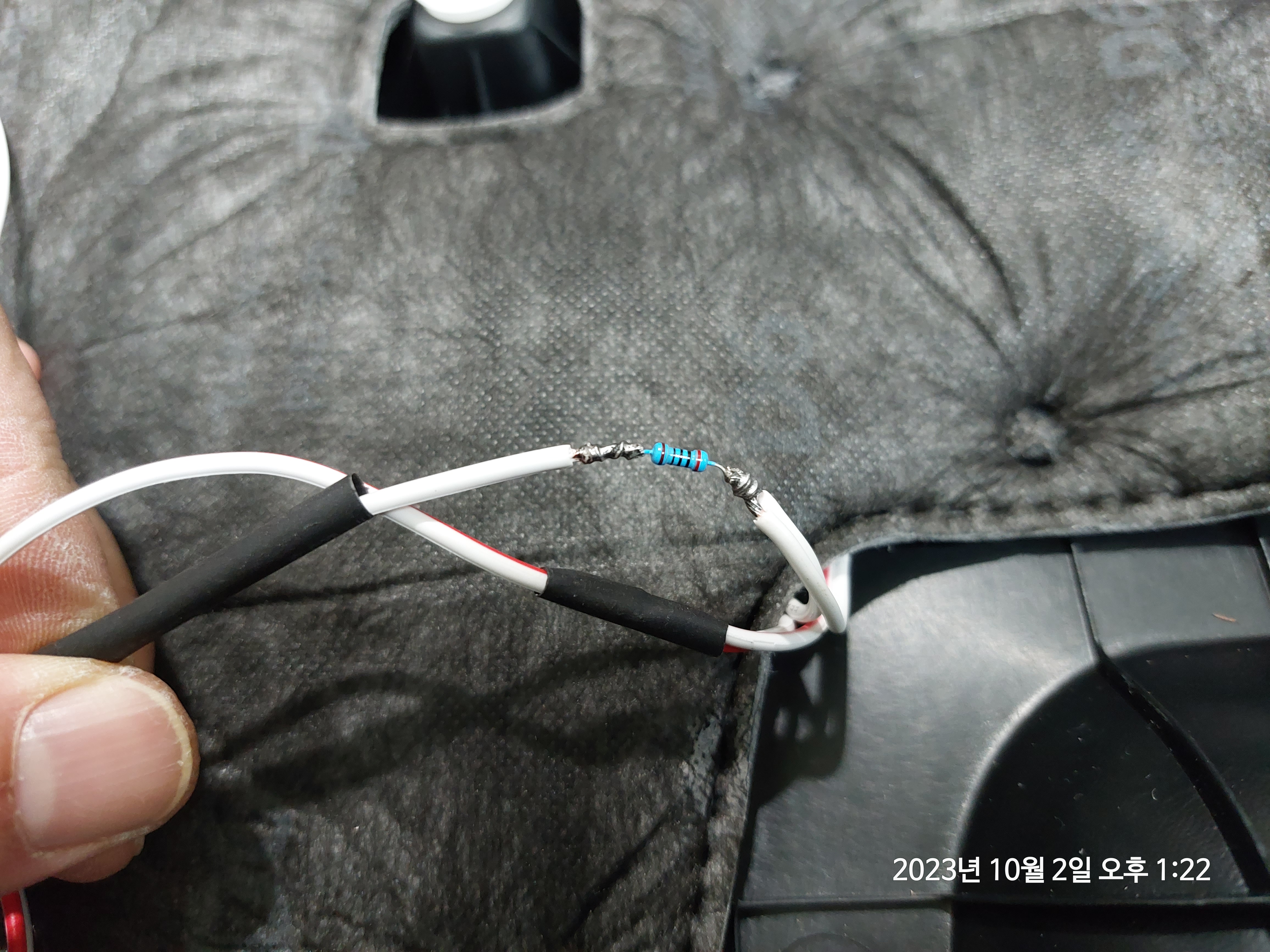 이 두개의 배선을 각각 브릿지 시킨 후 한쪽 라인에 220옴 저항을 달았습니다.