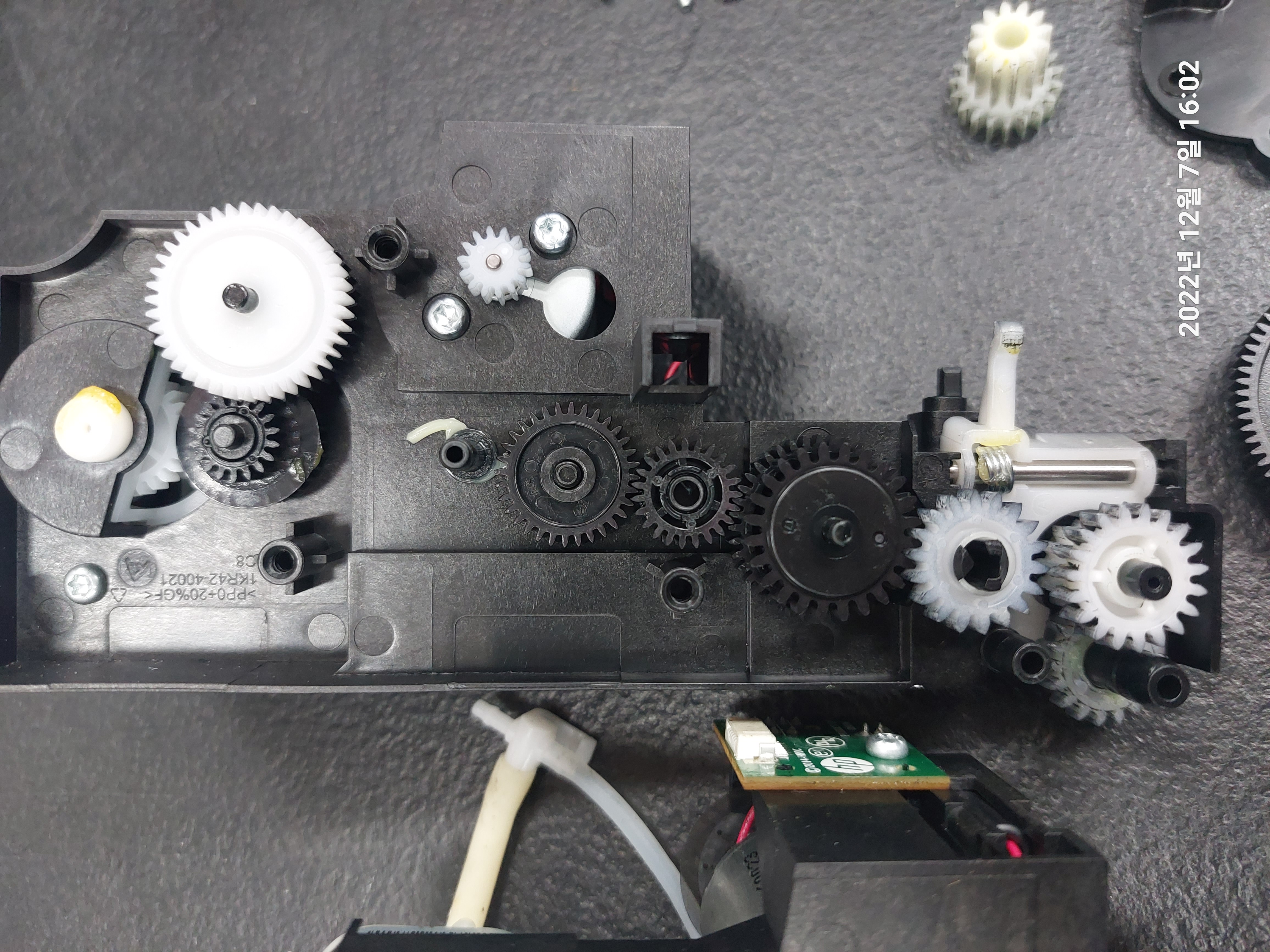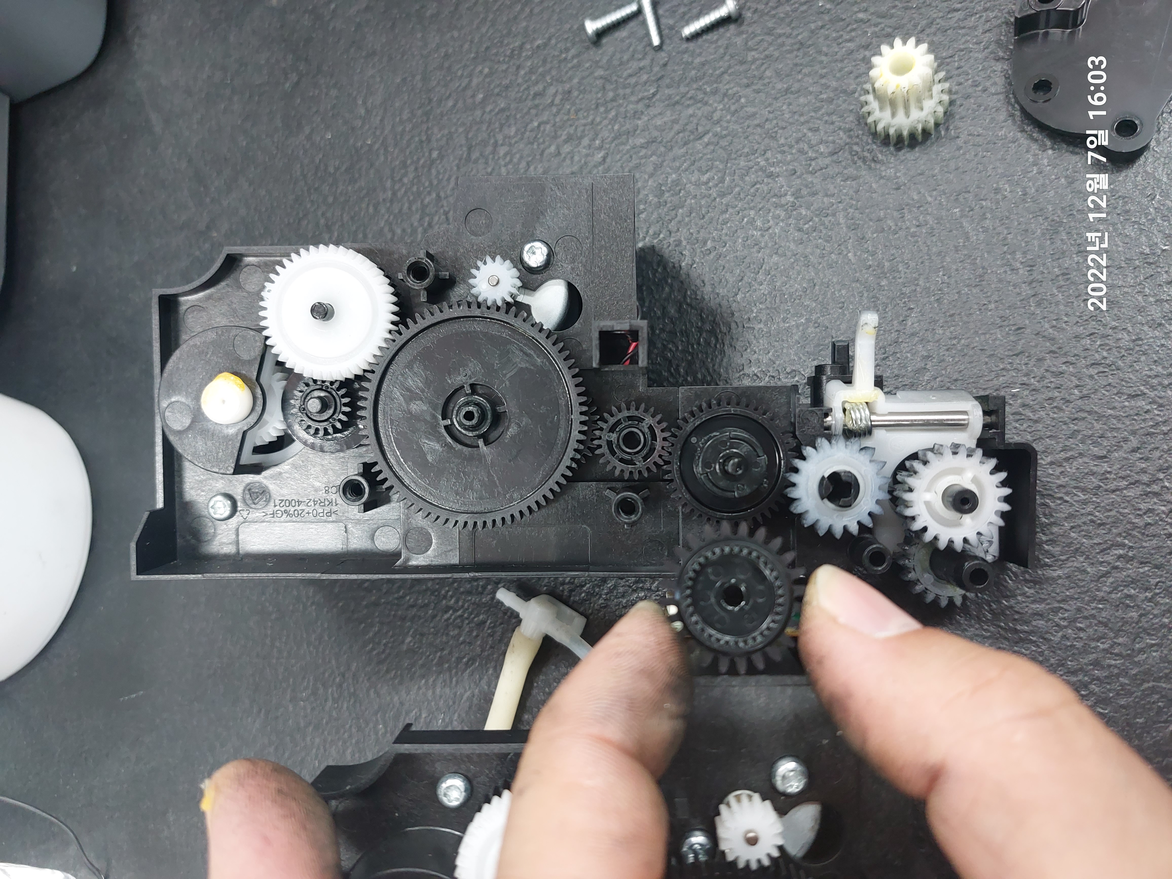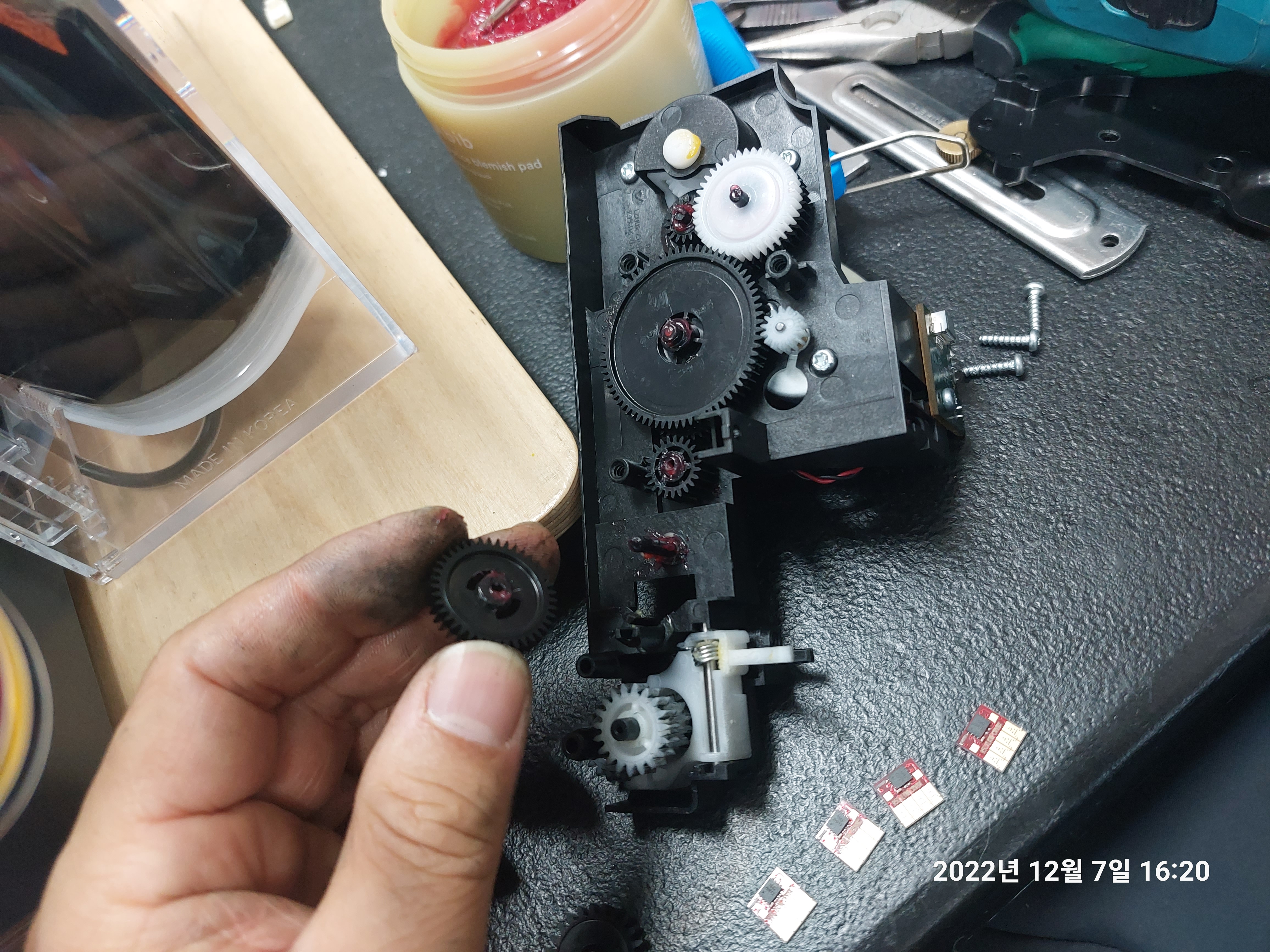 기어축과 기어의 내경이 맞닿는 마찰계수가 높아질 부분에 그리스를 충분히 도포해 줬습니다.
