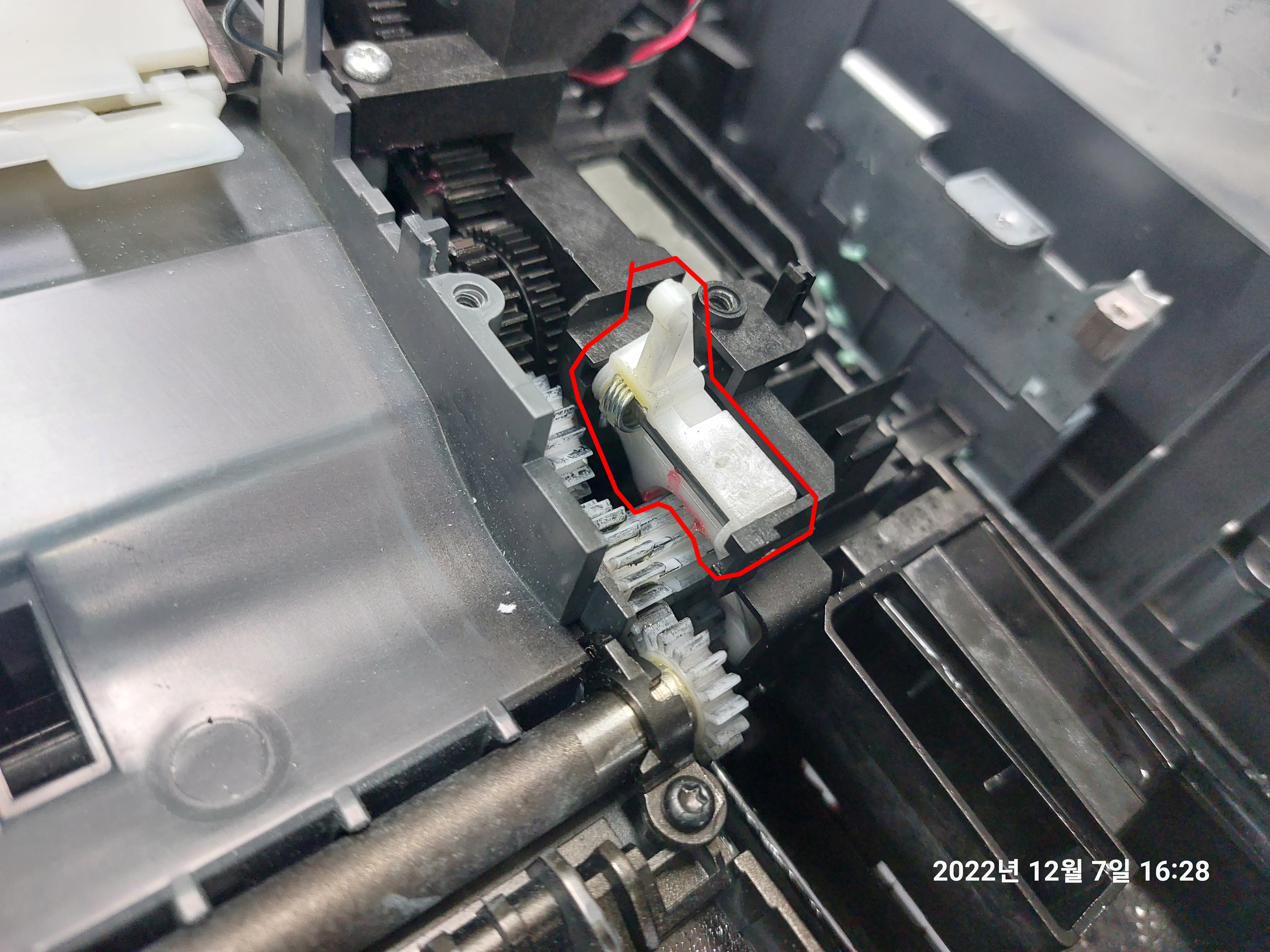 소음의 원인은, 바로 위 사진의 가장 우측의 하얀색 기어가 범인인데요.